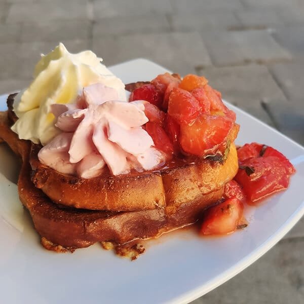 Les recettes de Justin : Brioche perdue aux tomates cerises et fraises au balsamique, citron et basilic ou menthe
