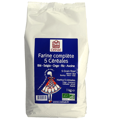 Cette farine convient bien pour la préparation de pains et pâtisseries rustiques aux saveurs multiples. Elle vous offre en plus d’une saveur particulièrement agréable, une farine dont les éléments nutritifs sont complémentaires (mélange de blé, de seigle, d’orge, de riz et d’avoine).