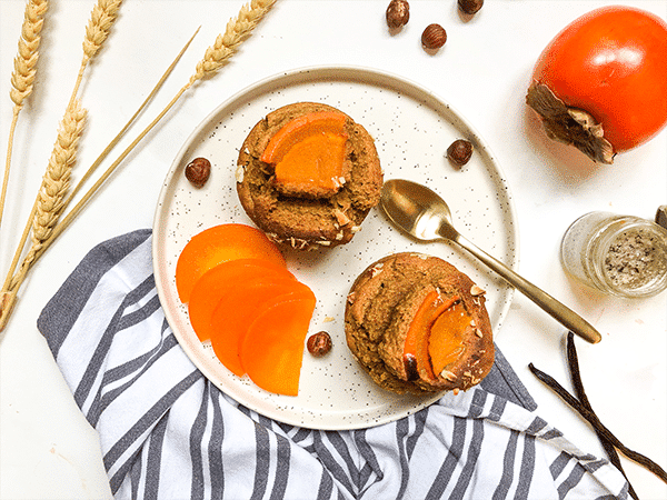 Accueil - Recettes - Desserts, goûters & petits déjeuners - Les recettes de Eve is vegan : Muffin au kaki noisette