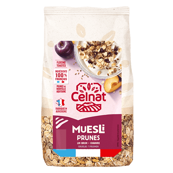 Celnat lance les premiers mueslis où 100% des ingrédients proviennent de France. Cette recette ravira les gourmands de douceur avec sa saveur de prune. Une recette consensuelle qui fera l’unanimité. Cette recette c’est se faire plaisir en ayant l’esprit libre.
