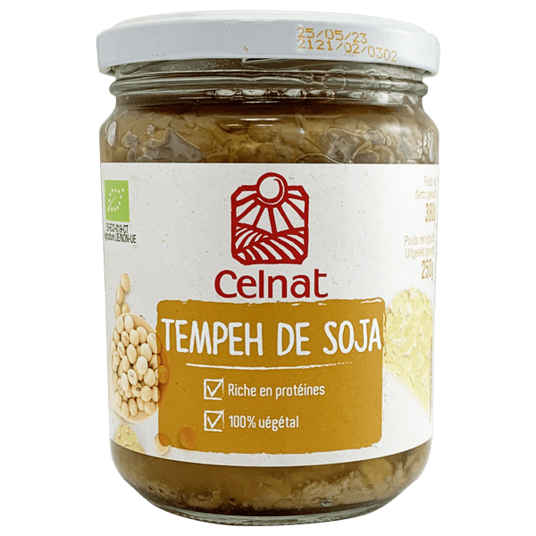 Le tempeh est est un produit alimentaire à base de soja fermenté, originaire d’Indonésie. Pour sa fabrication, le soja est cuit, écrasé puis fermenté. Au niveau gustatif, on lui prête des notes de champignon, de noix et de levure. Idéal Coupé en cubes ou en tranches, mariné ou ajouté directement à tout type de préparation.
