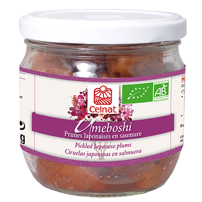 Ingrédient reconnu au Japon pour ses diverses propriétés médicinales, ces prunes fortement acides et salées obtenues par fermentation acido-lactique, se consomment telles quelles ou en accompagnement du riz, de légumes ou légumineuses.
